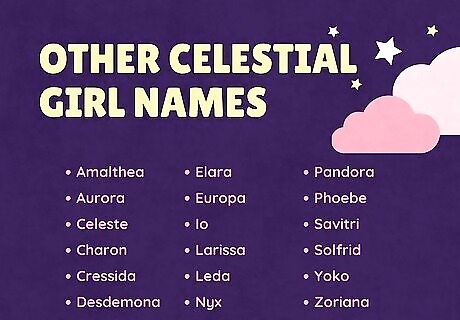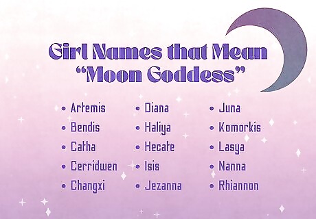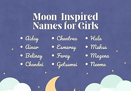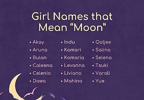 These beautiful names all mean “moon,” and some of them have a few additional meanings as well (the name Celenia means both “moon” and “heaven,” for example). Prior recommends considering names associated with "moon," such as "light"; names with this meaning include "Lucile, Lucia, Lucinda, Dawn, Aurora." Here are some more options to choose from: Akay: “Shining moon,” Turkish origin. Aruna: “Moon,” “reddish brown,” “dawn,” “love,” or “affection,” Sanskrit, Indian, and Japanese origins. Bulan: “Moon,” Indonesian origin. Caleena: “Moon,” Greek name. Celene: “Moon,” Greek origin. Celenia: “Moon” or “heaven,” Latin and Greek origins. Celinde: “Moon” or “heaven,” Latin and Greek origins. Chander: “Moon,” “pleasant,” or “shining,” Indian and Sanskrit origins. Chandra: “Moon,” “shining,” or “to shine,” Sanskrit origin. Cynthia: “Moon” or “of the moon,” Greek and Sanskrit origins. Dawa: “Moon,” Tibetan origin. Indu: “Moon” or “bright drop,” Sanskrit origin. Kamari: “Moon” or “moonlight,” Swahili and Arabic origins. Kamaria: “Moon,” Arabic, Persian, and Swahili origins. Levanna: “Moon,” “to rise,” or “to raise up,” Latin and Hebrew origins. Lewana: “Moon” or “white,” Hebrew origin. Liviana: “Moon,” “to rise,” or “shining white one,” Hebrew origin. Lucine: “Moon” or “Light,” Armenian and Latin origins. Luna: “Moon,” Latin and Roman origins. Luneth: “Moon” or “of Luna,” Latin origin. Lunnette: “Moon,” “idol,” “image,” or “shape,” Welsh, French, and Latin origins. Lunelle: “Little moon,” French and Latin origins. Mahina: “Moon, “moonlight,” or “moon glow,” Hawaiian and Japanese origins. Meztli: “Moon,” Aztec origin. Mona: “Moon,” “noble,” or “peaceful, Old English, Irish, Greek, and Arabic origins. Mwezi: “Moon,” Swahili origin. Ooljee: “Moon,” Native American origins. Salina: “Moon,” “light,” “heaven,” “modest,” or “bashful,” Sanskrit, Greek, and Latin origins. Salinda: “Moon” or “heaven,” Latin origin. Selena: “Moon,” Greek origins. Sena: “Moon,” Greek origin. Shashi: “Moon” or “moonbeam,” Sanskrit origin. Tsuki: “Moon” or “month,” Japanese origin. Varali: “Moon,” Sanskrit origin. Yue: “Moon,” Chinese origin. Meet the wikiHow Expert Sonya Prior is a baby naming expert, content creator, and name consultant known as the BB Namer. She works with families to find the perfect baby name and shares name content on social media to over 30k followers.