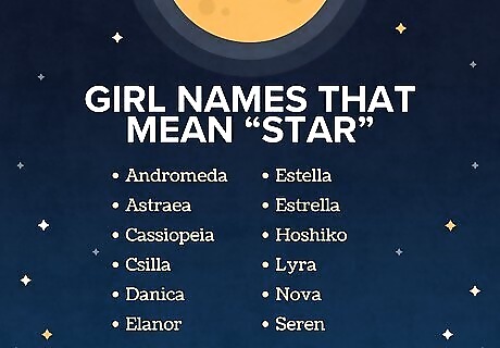 If you’re looking for an out-of-this-world name, but you’re not quite sold on a moon-inspired option, consider going with a star-inspired name instead! Here are a few names that mean “star,” as well as a few that are the names of famous constellations: Andromeda: “Leader of humankind” and name of a constellation, Greek origin. Astra: “Star” or “a celestial body,” Greek or Latin origins. Astraea: “Star” or “starry one,” Greek and Latin origins. Cassiopeia: “Cassia juice” and name of a constellation, Greek origin. Csilla: “Shining star,” Hungarian origin. Danica: “Morning star,” Slavic origin. Elanor: “Sun-star,” “light,” “luminous,” or “radiant,” French, Arabic, and German origins. Estelle: “Star,” Latin origin. Estella: “Star,” Latin origin. Esther: “Star” or “hide,” Persian and Hebrew origins. Estrella: “Star,” Spanish and Latin origins. Etoile: “Star,” French and Latin origins. Hoshiko: “Star,” Japanese origin. Lyra: “Lyre” or “harp” and the name of a constellation, Greek origin. Nova: An astronomic term for bright stars that appear suddenly. Seren: “Star” or “sunny, cloudless sky,” Welsh and Latin origins. Starla: “Star,” British origin. Stella: “Star,” Latin origin. Sterling: “Little star” or “valuable,” British origin. Tara: “Star” or “hill,” Irish and Sanskrit origin.