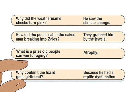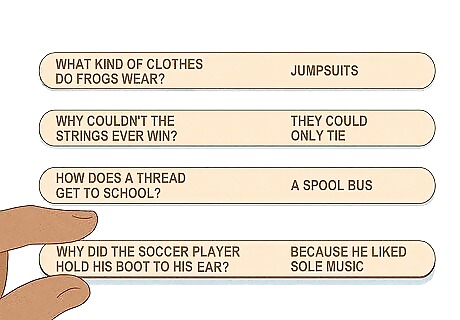 These jokes are classically corny—and undeniably hilarious. What gets a kid more energized than a sugary sweet treat? Laughing their butt off to the punchline of a cheesy joke, of course! Like these: What kind of clothes do frogs wear? Jumpsuits. Why couldn't the strings ever win? They could only tie. How does a thread get to school? A spool bus. Why did the soccer player hold his boot to his ear? Because he liked sole music. Why does a quarter flip higher than other coins? It has an eagle on it. What crew mans a haunted ship? A skeleton crew. What’s the hardest thing about learning to ride a bike? The pavement! How did the telephone propose to his girlfriend? He gave her a ring. How did the computer catch a fish? With its internet. Why can’t you play soccer with pigs? They hog the ball. What kind of pets does a band have? Trumpets. Why didn’t the cashier laugh at the customer's joke? It made no cents. Where do dogs hate to shop? The flea market. What do golfers love to drink? A cup of tee. Where do you put barking dogs? In a barking lot. What do pigs and ink have in common? They both go in a pen. Why are frogs rarely angry? They eat whatever bugs them. Where does an elephant keep its suitcase? In its trunk. What is a musician’s favorite pastry? A drumroll. What do you call a square that’s been in an accident? A WRECKtangle. What position do ghosts play in soccer? Ghoulie. What did the sink say to the potty? You look flushed. Why did the baseball player get arrested? He stole second base. Where were pencils invented? PENCIL-vania. What did the triangle say to the circle? You’re pointless. What do lawyers wear to court? Lawsuits. What do you call a crocodile that likes to bowl? An alley-gator. Why was Cinderella so bad at soccer? She kept running away from the ball! What did Mr. & Mrs. Hamburger name their daughter? Patty. What do icicles say to each other when leaving? Bye-cycle. How do billboards talk? Sign language.