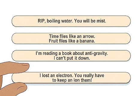 These quick quips are clever and giggle-worthy. So, really, one-liners don't tend to appear on popsicle sticks, which typically break the joke up into, y'know, two lines—the question on one end of the stick, and the answer on the other. But we've included some popsicle stick joke-esque one-liners here anyhow, because they're just so corny, kooky, and silly: RIP, boiling water. You will be mist. Time flies like an arrow. Fruit flies like a banana. I’m reading a book about anti-gravity. I can’t put it down. I lost an electron. You really have to keep an ion them! I was wondering why the frisbee kept getting bigger and bigger, but then it hit me. I went to buy some camo pants but couldn’t find any. I ordered a chicken and an egg online. I’ll let you know what comes first. I failed math so many times at school, I can’t even count. Two clown cars collided with each other last night. Over 50 died. I used to have a handle on life, but then it broke. I heard there were a bunch of break-ins over at the car park. That is wrong on so many levels. Don’t you hate it when someone answers their own questions? I do. I told him to be himself; that was pretty mean, I guess. When life gives you melons, you might be dyslexic. My wife told me to stop impersonating a flamingo. I had to put my foot down. A cheese factory exploded in France. Da-brie was everywhere. A bossy man walked into a bar and ordered everyone a round. I can’t believe I got fired from the calendar factory. All I did was take a day off. I'm not lazy, I'm just on energy-saving mode. People who use selfie sticks really need to have a good, long look at themselves. I quit my job at McDonald’s yesterday. Turns out, my boss was a real clown. I told my friend 10 jokes to make him laugh. Sadly, no pun in ten did. We also asked Garavito his go-to corny one-liner, and he offered up this gem: "I know a joke about lions, but if I told you, I’d be lyin’."