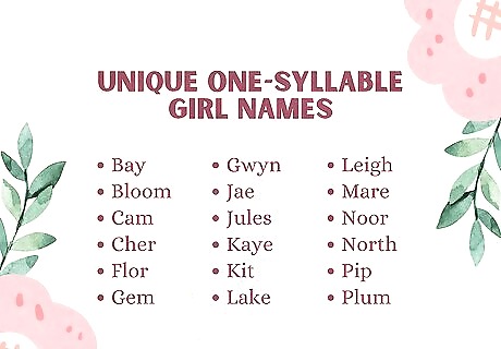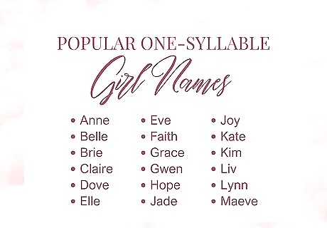 These single-syllable girl names are popular for a reason! They’re totally adorable and timeless, so you can rest assured that they won’t go out of style. Here are some of our favorite picks for you to choose from: Anne: “Grace,” Hebrew origin. Belle: “Beautiful,” French origin. Blair: “Plain” or “field,” Scottish origin. Brie: “High,” “noble,” “strong,” or “virtuous,” Irish and Hebrew origins. Brynn: “Hill,” Welsh origin. Brooke: “Water” or “stream,” English and German origins. Claire: “Bright” or “clear,” French origin. Dove: A bird symbolizing peace, British origin. Elle: “Sun ray” or “light,” Greek origin. Eve: “Life,” Latin and Hebrew origin. Faith: “Trust” or “devotion,” English origin. Grace: “Favor” or “blessing,” Latin origin. Gwen: “Fair,” “white,” or “blessed,” Welsh origin. Hope: “To have confidence or trust,” British origin. Jade: Precious stone, British origin. Jess: Short for “Jessica,” meaning “to behold,” Hebrew origin. Joy: “Happiness,” Latin origin. June: “Young,” “sacred to Juno,” or the month of June, Latin origin. Kate: “Pure,” Greek and British origin. Kim: Short for “Kimberly,” meaning “Cyneburg's field,” British origin. Liv: “Life,” “defense,” “shelter,” or “warmth,” Norse origin. Lynn: “Lake” or “waterfall,” British, Welsh, and French origins. Maeve: “Intoxicating” or “she who rules,” Irish origin. May: The month of May, British origin. Neve: “Snowy” or “bright,” Latin, Irish, and Hebrew origins. Sage: “Wise” or “prophet,” Latin origin. Sam: “God has hear,” Hebrew and Greek origins. Skye: “Island of clouds” or “winged,” Scottish origin. Tate: “Cheerful,” British origin. Paige: “Young servant,” French and Roman origins. Pearl: “Pearl,” Latin origin. Rose: “Rose” or “flower,” Latin origin. Rue: “Regret” or “street,” British and French origins. Tess: “To harvest” or “summer,” Greek origin. Wren: “Songbird,” English origin.