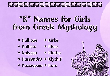 Look to Greek mythology for inspo. Several important figures in Greek mythology had names that started with a “K,” and we’ve rounded up some of the most beautiful options here. These are great choices if you or your partner are history buffs, or just fans of Greek mythology in general! Kalliope: One of the nine Muses, goddess of epic poetry. Kallisto: A nymph who was beloved by Zeuys. Kalypso: A nymph who fell in love with Odysseus. Kassandra: A Trojan princess with the gift of prophecy. Kassiopeia: The mother of Andromeda and a constellation in the northern sky. Kirke: Greek form of Circe, sorceress who encounters Odysseus in The Odyssey. Kleio: One of the nine Muses, goddess of history and heroic poetry. Klotho: One of the three Fates who spins the thread of life. Klythië: An ocean nymph who becomes the heliotrope flower. Kore: A nickname for the goddess Persephone.