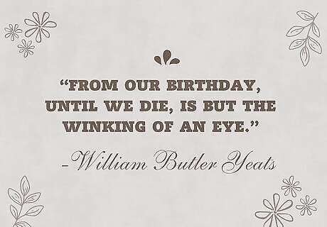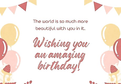 Share a famous quote to spread birthday cheer and positive vibes. Struggling to find the right sentiments? Get help from someone else! Choose an author, celebrity, or public figure that the birthday boy or girl admires, then use their words to say happy birthday. Here are some sweet, silly, and festive options: “Who says we have to grow up?” — Walt Disney “You don’t get older, you get better.” — Shirley Bassey “Every birthday is a gift. Every day is a gift.” — Aretha Franklin “We turn not older with years, but newer every day.” — Emily Dickinson “Learn from yesterday, live for today, hope for tomorrow.” — Albert Einstein “The best birthdays of all are those that haven’t arrived yet.” — Robert Orben “The older you get the better you get, unless you are a banana.” — Betty White “Whatever with the past has gone, the best is always yet to come.” — Lucy Larcom “You are never too old to set another goal or to dream a new dream.” — Les Brown “Birthdays come but once a year, celebrate and be of good cheer.” — Robert Rivers “From our birthday, until we die, is but the winking of an eye.” — William Butler Yeats “As soon as I saw you I knew a grand adventure was about to happen.” — A.A. Milne “We grow neither better nor worse as we get old, but more like ourselves.” — Bernard Baruch “Count your age by friends, not years. Count your life by smiles, not tears.” — John Lennon “The secret of staying young is to live honestly, eat slowly, and lie about your age.” — Lucille Ball “We grow neither better nor worse as we get old, but more like ourselves.” — Bernard Baruch “The more you praise and celebrate your life, the more there is in life to celebrate.” — Oprah Winfrey “Today is the oldest you have been and the youngest you will ever be again. Make the most of it!” — Nicky Gumbel “Live the full life of the mind, exhilarated by new ideas, intoxicated by the romance of the unusual.” — Ernest Hemingway “Let us never know what old age is. Let us know the happiness time brings, not count the years.” — Decimus Magnus Ausonius