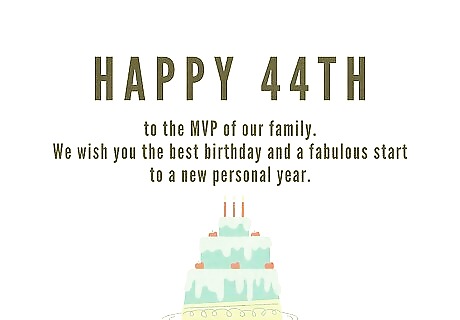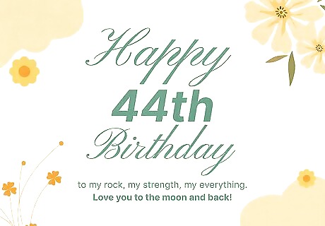Send a short and sweet message to share your well-wishes. Whether you’re writing a card, sending a text, or saying your wish in person, it’s easy to make the birthday boy or girl feel special on their big day. Just let them know you’re thinking about them and express excitement for their new personal year! Happy cake day! ✨????✨ Go wild! It’s your birthday! You make 44 look spectacular! Hope your 44th birthday rocks! Forty-four never looked so good! Cheers to 44 laps around the sun! For the 44th time… Happy birthday! Hip, hip, hooray—it’s your birthday! ???? Today’s forecast: 100% chance of birthday fun! Happy birthday! I hope all your dreams come true! Thinking of you today. Have the best birthday ever! Time to make some wishes! Happy, happy birthday to you! Sending you warm wishes for a birthday that brings you joy! ???? Happy 44th birthday to the most wise and wonderful person I know!