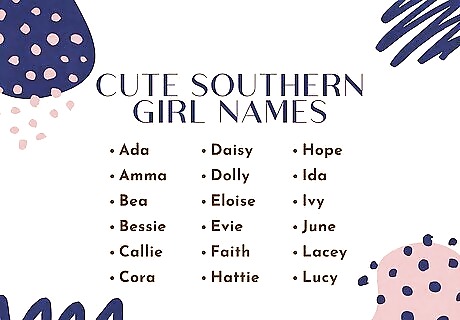 Go for these names if you want to amp up the cuteness factor. Southern names don’t always need to be super fancy, elegant, or old-fashioned—they can also be short, simple, and downright adorable! Here are a few cute Southern names as sweet as homemade peach cobbler: Ada: “Noble,” “nobility,” or “island,” German and Turkish origins. Alma: “Nurturing” or “soul,” Latin origin. Amma: “Born on a Saturday,” Ghanaian origin. Bea: “Bringer of happiness” or “blessed,” American origin. Belle: “Beautiful,” French origin. Bessie: “Pledged to God,” Hebrew origin. Callie: “Beautiful” or “lovely,” Greek origin. Cora: “Maiden,” Greek origin. Daisy: “Day’s eye,” English origin. Della: “Noble,” German origin. Dolly: “Gift of God,” English origin. Dottie: “Gift of God,” Greek origin. Eloise: “Healthy” or “wide,” French origin. Etta: “Home ruler,” German origin. Evie: “Life,” Latin origin. Faith: “Trust” or “devotion,” English origin. Hattie: “Home or estate ruler,” German origin. Hope: “To have confidence or trust in,” English origin. Ida: “Hardworking,” Greek origin. Ivy: “Climbing evergreen plant,” British origin. June: “Young,” Latin origin. Lacey: “Cheerful,” Old French and Latin origin. Lily: “Lily flower,” English origin. Lucy: “Light,” Latin origin. Lulu: “Pearls,” “calm,” “protected,” or “famous warrior,” Swahili origins. Mae: “Beloved,” “bitter,” “drop of the sea,” or "pearl,” Hebrew and Latin origin. Maisie: “Pearl” or “bitter,” Scottish origin. Marie: “Star of the sea,” French origin. Minnie: “Helmet” or “protection,” German origin. Nellie: “Horn” or “sun ray,” Latin origin. Reba: “Connection” or “link,” Hebrew origin. Peggy: “Pearl,” Greek origin. Sadie: “Princess,” Hebrew origin. Sally: “Princess,” Hebrew origin. Shelby: “Willow,” Norse origin. Suzie: “Lily,” Hebrew origin. Trixie: “Bringer of joy,” Latin origin. Vera: “Faith,” Russian origin.