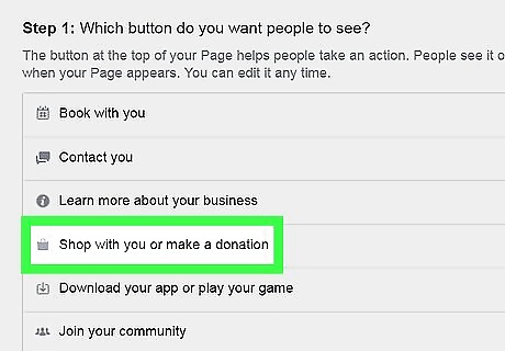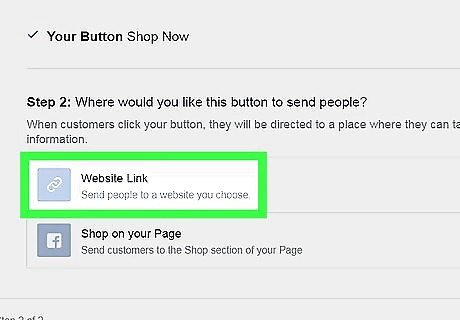 Click Website Link. It's the first option under the “Step 2” header. If you don't have a website that allows people to make purchases, you can set one up on Facebook. Click Shop on your Page instead, and then click Finish.
