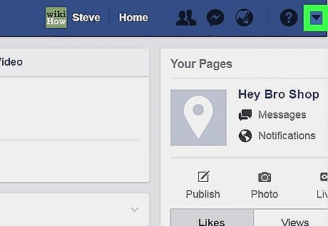 Click the downward-pointing arrow. It's at the top-right corner of Facebook. A menu will expand.