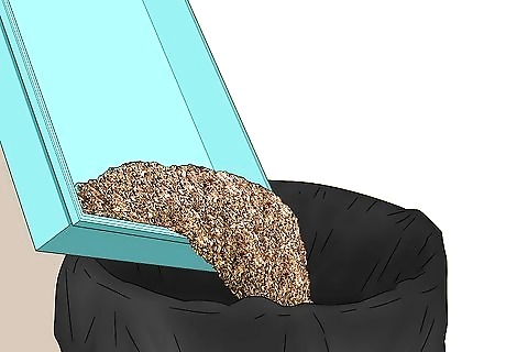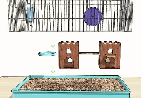 Remove the old bedding. You should clean your hamster’s cage every week. When you do this, throw out whatever bedding material you used to line the bottom of the cage. This is important, as it can accumulate dirt and bacteria. If you leave it in too long, your hamster could get sick.