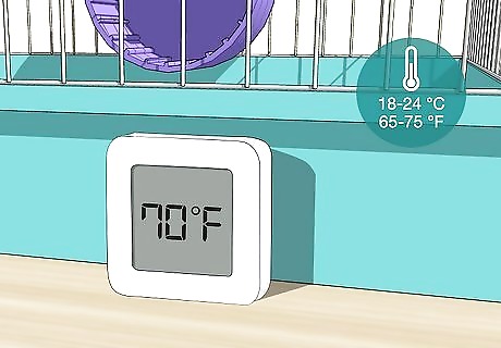 Monitor the temperature in the habitat. While hamsters don’t need anything special to keep them comfortable, you should make sure that the temperature in their cage stays within certain limits. In most circumstances, the temperature in the habitat should be between 65 and 75 degrees Fahrenheit (18 to 24 degrees Celsius).