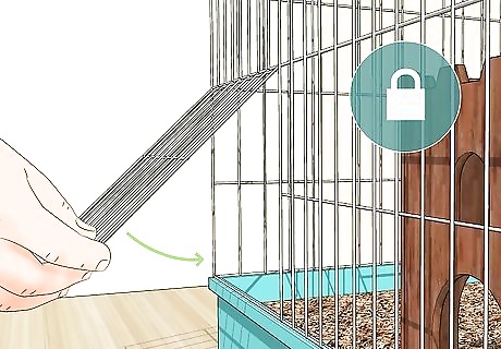 Secure the door on the hamster’s cage. When you are done handling your hamster, place it carefully in its cage and close the door. This is important, as your hamster could easily escape if you leave the cage door or top unsecured.
