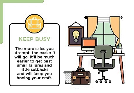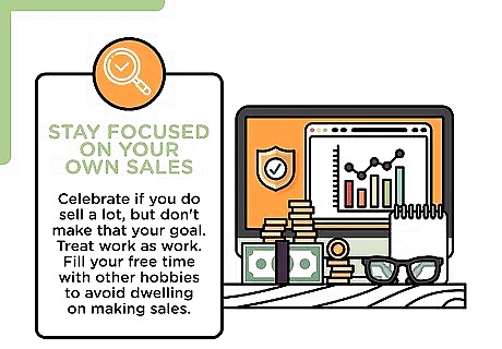Stay focused on your own sales. Some workplaces try to stimulate sales by encouraging competition among the sales staff, posting numbers for the week or the month. While this can be a friendly way of selling enthusiastically, it can also be discouraging if you constantly compare yourself to other salespeople. Celebrate if you do sell a lot, but don't make that your goal. Treat work as work. Fill your free time with other hobbies to avoid dwelling on making sales.