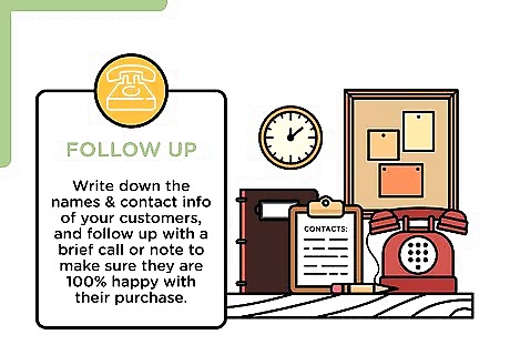 Follow up. If you really want to be a great salesman, go the extra mile. Write down the names and contact info of your customers, and follow up with a brief call or note to make sure they are 100% happy with their purchase. This is how you turn customers into raving fans who will return to you in the future. This is how you get referrals from your customers, and promotions from your employer.