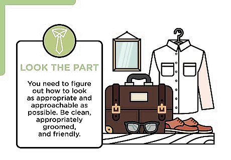 Look the part. There's no particular style--a car salesman will probably dress somewhat differently than a salesperson at a guitar shop--but you need to figure out how to look as appropriate and approachable as possible. Be clean, appropriately groomed, and friendly.