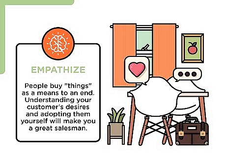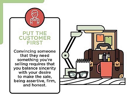 Put the customer first. You can't sell anyone anything if they don't trust you. Convincing someone that they need something you're selling requires that you balance sincerity with your desire to make the sale, being assertive, firm, and honest. If they don't trust you, they're less willing to make an intelligent buying decision.