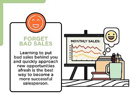 Forget bad sales. Spending lots of time on a sale that falls through can be frustrating and discouraging, but learning to put bad sales behind you and quickly approach new opportunities afresh is the best way to become a more successful salesperson. Treat each failed sale as practice. What did you learn from it?