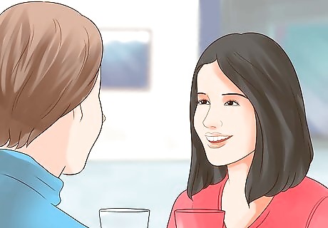 Try to start flirting. Do really subtle things like play with your hair or smile directly at them. Try to tease them a little and steal their stuff once you're a bit more comfortable with them. If you want, you could add some physical contact in by nudging them with your elbow or even hugging them once you get really comfortable.