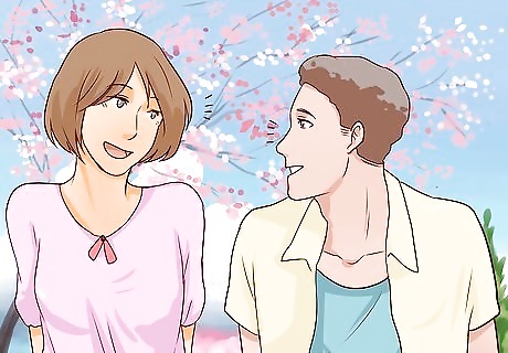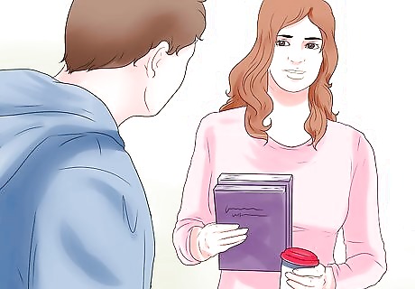 Get them to notice you. If you're really quiet or shy, this is the most daunting step. Try to get them to notice you by making eye contact when they do talk to you, or laughing at their jokes. Make sure to walk confidently and be slightly bold. If you want to do something old-fashioned, try to "accidentally" bump into them in the halls. Your books will go everywhere and if they say sorry you could say something like "That's okay it was my fault too." This just gets them to notice you. They can't like you if they don't even know you exist. If you're not afraid, try to make conversation with them and get to know them a bit more. If you're laughing about something no one else knows about with your friends, you can get noticed too.