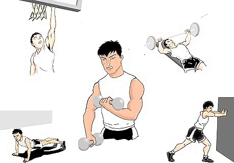 Get in shape. Depending on how well in shape you already are, start out with 50-100 push ups a day. They don't have to be all at once, but see how many you can do in a row at first, and then try to beat that the second set.