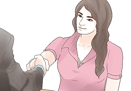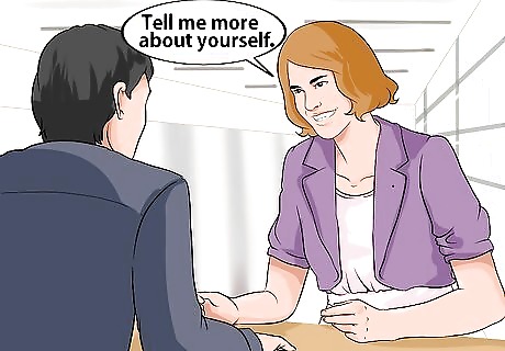 Practice solid interview skills. If you're called in for an interview, practice good interview skills. Being respectful, professional, and impressive during an interview can help land you a job. Always dress up for interviews. For women, wear a conservative blouse and dress pants or a professional dress or women's suit. For men, a suit and tie is best. Make sure your shoes are also business professional. It might be a good idea to conceal any tattoos or piercings. Use solid non-verbal communication. Make eye contact with the interviewer. Smile and nod to show you are listening. Stand up straight to convey confidence. Offer a firm handshake at the beginning and end of the interview. Research the company before going in for an interview. You want to show that you're invested and interested in the potential job. Spend some time browsing the company website learning about the company's mission, ethics, and history. Always ask questions at the end of the interview. Do not simply ask logistic questions, such as the pay or when you can expect to hear back. Instead, ask broad, open-ended questions like, "What is your company's culture like?" and "What do you like about working here?"