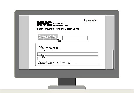 Submit an individual license application to begin the process. Almost all locksmith applications are completed online. Once you find the government page where you can apply for a locksmithing certification, click the link on the page to begin an individual license application. Enter your name, address, and other personal information to begin your application. You can also call your local government’s consumer affairs line to find out where you can apply for a locksmith certification. You will typically upload each of your required documents to an online portal. In some states, you may need to mail these documents in.