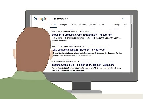 Search for job postings online to find work as a locksmith. To find work as a locksmith, start by looking at online job posts. Upload your resume and submit applications to locksmith companies in your area. Some positions will specialize in car locks, while other companies will emphasize home security systems. Look for positions that interest you before applying for positions.Tip: Some locksmiths work as independent contractors and hire out their services alone. This requires a business license, though. You’ll also struggle to find clients without building a reputation and getting some experience first. Get some experience and learn the trade before trying to start off on your own as an independent contractor. Your resume doesn’t matter nearly as much as your certification and your interview. Don’t worry if your job experience doesn’t perfectly align with a career in locksmithing. You can also call locksmiths in your area to find out if they’re hiring. If you live around smaller, older businesses, they may not list their available positions online.