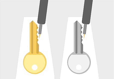 Cut keys and provide security advice to consumers. Many locksmiths offer key-cutting services for clients. If you work for a company with a brick-and-mortar store and have no client calls, you may be required to work behind a desk at the shop and cut keys. Use the client’s copy to create duplicate versions. This is typically done with a key-cutting computer program, but you may need to cut the key by hand using a cutting machine. Consumers may also have questions about upgrading their locks or improving their home security system. Some locksmiths advance in their field by learning about camera surveillance and alarm systems so that they can market these services to clients.