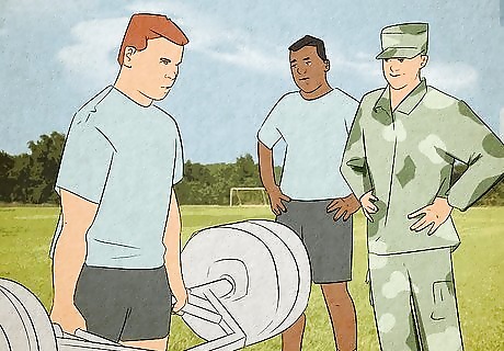 Pass the initial fitness test. Military training is tough. Before you ever apply, begin running and training. Eat foods low in fat and high in protein, such as fish and chicken. You don’t need to be perfect to enlist. Make sure you can pass the initial strength test (IST) by doing two pull-ups, 44 crunches in two minutes, and a 1.5 mile (2.4 km) run in 13 ½ minutes. Doing even better than that prepares you for the scored fitness tests in boot camp.