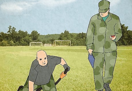 Complete combat and field training. The first week of boot camp is processing and academic work. The second week is about discipline. After that, your body will be tested. You’ll start out learning how to fight and move on to water survival and weapons training. Near the end, you’ll learn field skills like setting up a tent. After a grueling final test that covers all that you’ll learn, you’ll spend the last week graduating.