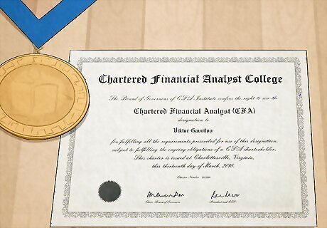 Get a professional certification. Professional certifications require you to study and pass lengthy exams, but they can help set you apart from the competition and typically are cheaper than getting an MBA. For example, you can become a Chartered Financial Analyst (CFA) after three phases of tests and with four years experience in the field. The preparation for the exams typically is self-study, so you can do it on your own time.