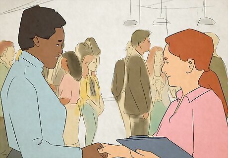 Network aggressively with investment bankers. The world of investment banking often is more about who you know than what you know. This is especially true if you are trying to enter investment banking from another industry or career path. Join professional associations or groups for investment bankers. If you live near large investment banks, hanging out at cafés or restaurants near the banks can be a good way to meet investment bankers casually. Keep in contact with investment bankers you meet, and follow up with them regularly. You want to stay on their mind if something comes up that they think might interest you.