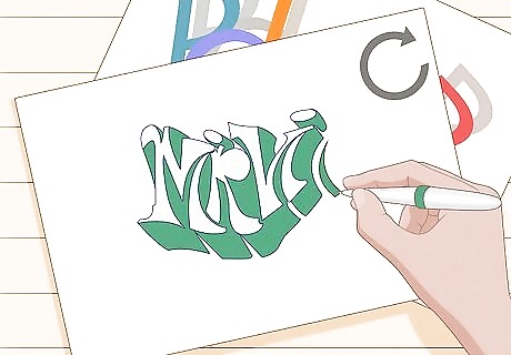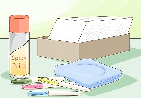 Get supplies together. You'll need old clothes, paper, spray paint or markers and a space to work in. Find an old tray or box that can fit loads of the paper most of your graffiti will be on. This will be where you put all of your graffiti work (even if you don't like them, it is important to keep them to find out how much you have improved later on.) Don't think expensive markers will make your drawings better. If you only have some cheap markers, you can still make great graffiti with them.