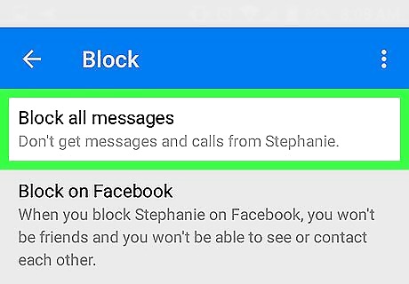 Tap Block all messages. You will no longer receive messages from this person. To unblock this person in the future, return to this screen and tap Unblock all messages.