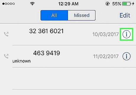 Tap ⓘ. You'll find this to the right of the number you want to block.