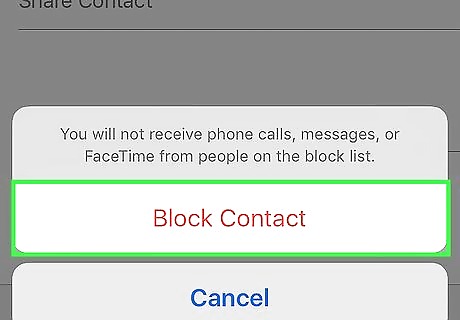 Tap Block Contact. This will add their number to your Blocked list, which will prevent them from being able to contact you with phone calls, FaceTime calls, and iMessages.