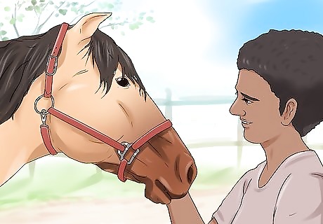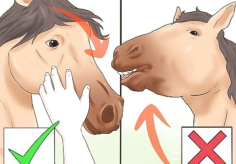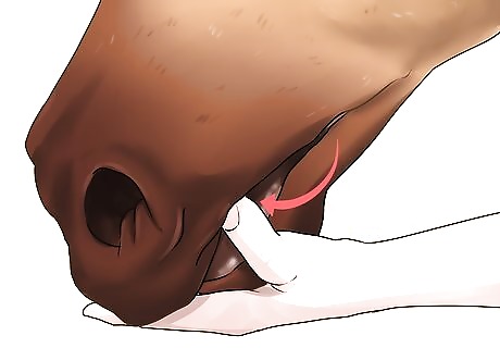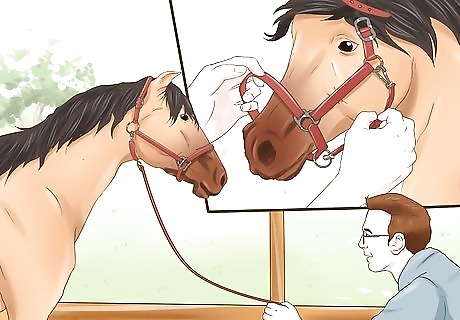 Call a veterinarian. Certain medical problems can make even the most gentle horse upset and difficult to manage. Many horses avoid the bit because their teeth and mouth hurt. Often, fixing their issues solves the problem overnight. If your horse throws their head when you touch their ears, you may want to have them checked for ear mites. Keep an eye out for tooth or mouth abscesses. If your horse has never had their teeth "floated"(filed smooth), it may be the problem.