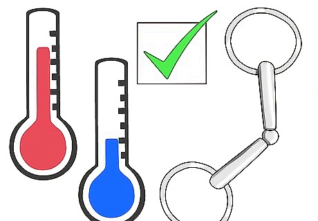 Make sure the bit is the right temperature. Bits that are too hot or cold can be painful or uncomfortable for your horse. You should store your bridle by hanging it up away from direct sunlight and inclement weather, such as rain or snow. If it's summer, keep the bit from sitting in the direct sun, where it can overheat and burn your horse. If it's winter, warm the bit up by rubbing it between your hands before asking the horse to take it.