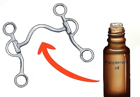 Rub your bit in peppermint oil. Horses generally love the taste of peppermint. You can put some peppermint oil on the bit to encourage them to take it. The oil will last for a long time, so you may not have to reapply it for a few months.