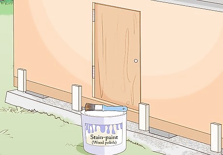 Add stain for a natural look if you bought unstained plywood siding. One way to finish the shed is to simply stain the wood. When staining wood, paint it on in the same direction as the grain of the wood. Use paintbrushes or rollers to make an even layer. You'll likely need to add 2 layers. If you stain it, you'll also need to paint on an all-weather finish for wood after the stain dries.