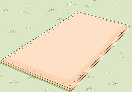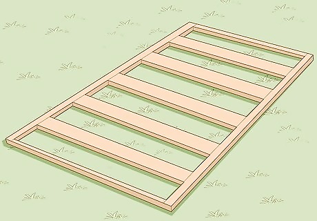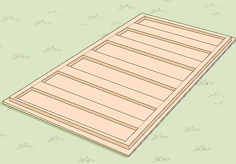Lay the boards out for the back wall and nail them to each other. Place the 2 113 in (290 cm) boards at the top and bottom of the wall. Add 2 6 ft (1.8 m) boards to each end. Space the other 4 6 ft (1.8 m) boards out evenly across the middle of the wall running up and down. Nail the boards into each other with size 16 penny nails. Nail into the top and bottom of the wall at each perpendicular board, adding 2-3 nails to each end for every board.