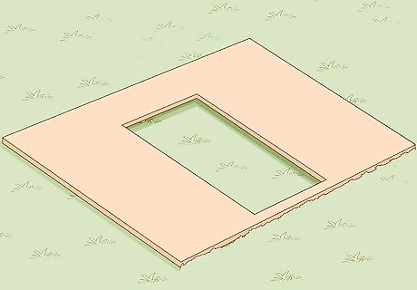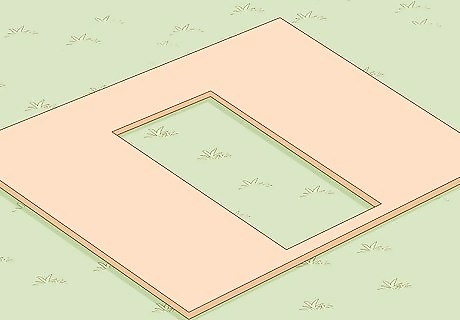 Make a frame for the door. Create the frame out of your 2 by 4 in (5.1 by 10.2 cm) boards. Cut 2 boards that go the height of the door and 1 that is the width of the door plus the width of the other 2 boards. Place the 2 longer boards parallel to each on the floor on their edges and the shorter board perpendicular at the top on its edge. Spread the 2 longer boards out so they are at either end of the shorter board, then nail them into place with size 16 penny nails to form the frame.