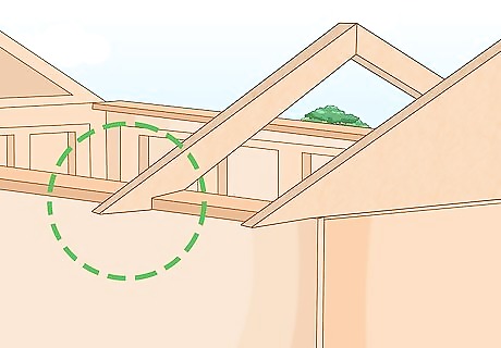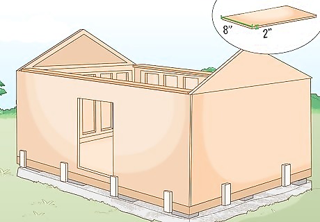 Nail a 2 by 8 in (5.1 by 20.3 cm) board on the front and back walls at the top. These boards will provide a brace for the rafters. When you nail them up, leave half of the board above the wall, which you'll notch the rafters into in a moment.
