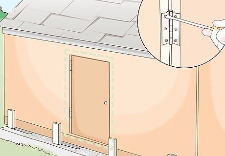Install the door. How you install the door depends on what type you choose. Typically, you need to attach the hinges on the wall and the door. You may also need to drill a hole for the latch and screw the latch plate into place if your handle has one. You may also need to install a lip at the bottom of the door to help it hang properly.