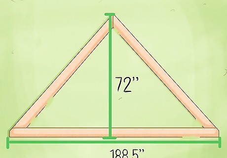 Make the pieces for the triangular roof braces. Draw out the schematic for the triangle on a piece of plywood. The triangle will need to be 188.5 inches (479 cm) on the bottom. Measure a right angle, and then create a side going up that's 72 inches (180 cm) tall. Draw a line from the top of this edge down to the other end of the board on the bottom, forming a triangle. Cut pieces to fit in the triangle. You'll need to cut the hypotenuse (the side that doesn't touch the right angle of the triangle) at an angle on both ends to meet the other boards. Cut and measure 4 boards to go vertically in the triangle. Each board will be a different height, and you'll need to cut the top of the board at an angle. Cut enough boards for 2 triangles, one for each side.