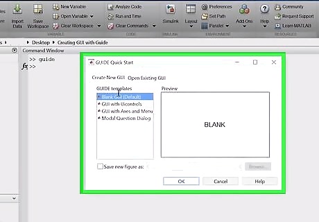 Click on "MATLAB" in the launch pad to expand the list and then double click on "GUIDE (GUI Builder)". If you cannot see the launch pad, click on view followed by launch pad. The GUI builder will appear