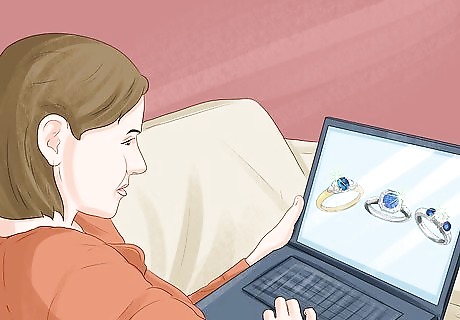 Ask your fiancé if he'd like to go ring shopping with you. Some couples prefer their wedding ring choices to be a surprise. Your partner might not want to see his ring until the special day. But, if you want to be sure, you could have him accompany you to the jewelers. After all, he'll be the one wearing this ring. He can help advise you on style, metal, possible gemstones, and fit. If desired, he could pick out bands he likes and you could choose a band later on to keep it a surprise.