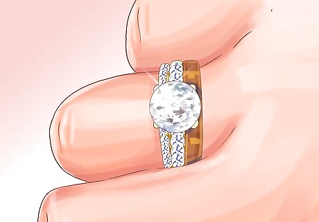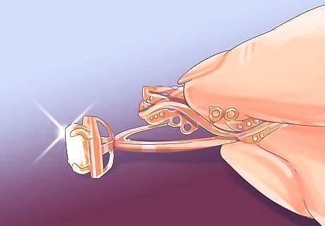 Look for the manufacturer's trademark and quality mark. A high-quality wedding band will have two marks. One is the manufacturer's trademark, which means that the manufacturer ensures good workmanship on your ring. The other is a quality mark (like "24K" or "PLAT"), which will vary depending on what metal your ring is made of. If your ring is made of two metals, it will have two quality marks.