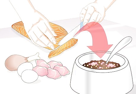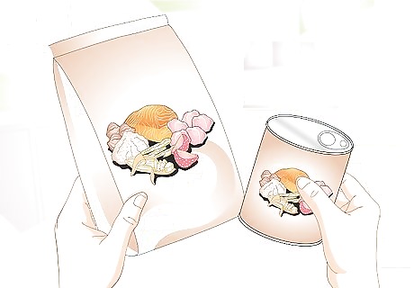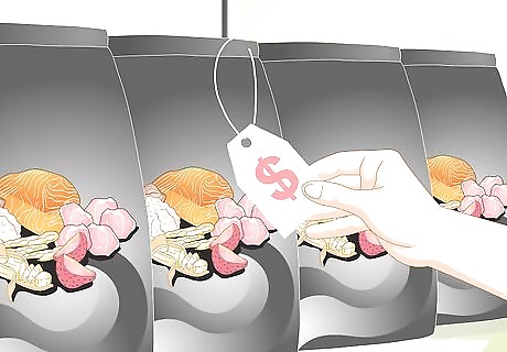 Recognize that price isn't everything. It is very tempting to assume that the most expensive food is the best, but this is not always the case. “Gourmet” foods often remove valuable proteins for more “fancy” sounding ingredients to lure customers in. Don't be fooled by this tactic. Compare the store brand or another bargain brand before splurging. Also, consider buying in bulk in order to save even more.