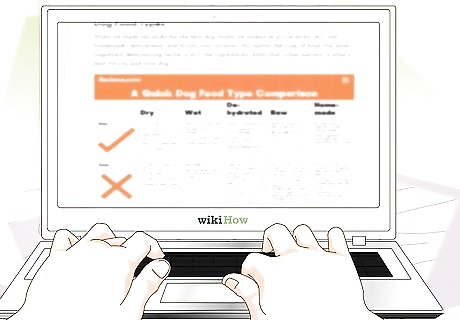 Pay attention to online reviews and ratings. Once you've narrowed down your choices to a handful of possible brands hit the internet and search for reviews. You will find many websites that provide up-to-date rankings of dog foods based on a wide variety of factors. Read the reviews to see if any one brand stands out above the rest. Look for more specific reviews. A user that states, “My dog didn't like it,” is much less helpful than a review that says, “My dog liked the beef flavor better than the chicken. Avoid the turkey if possible.”