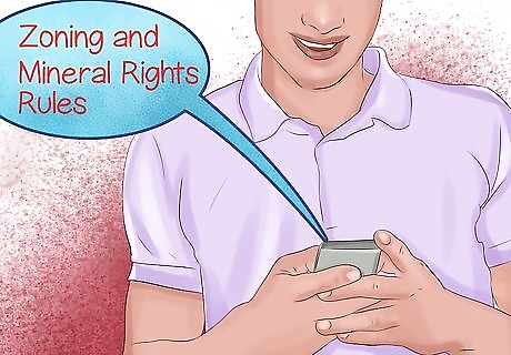 Review the land ordinances, zoning and mineral rights rules. Many mountain properties are located in areas that restrict how the property is used, what can be built on the land and whether or not individuals or state governments can own the rights to minerals located underneath the soil. In some western states, water is owned by the state and restricted to domestic, in-house use only.