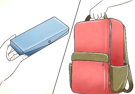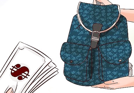 Buy a suitable bag. If you don't already have a backpack, rucksack or satchel, get one that will last a few years at least. Choose dark colors as these won't mark as easily. Check for sturdy zippers, flaps, tabs, etc. so that things can't fall out and won't bust easily. Check for sales on bags. You can spend a lot of money on bags, so it's wise to see what's on offer for less.